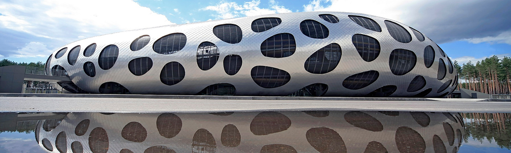 Il primo della lista è il Borisov Stadium, che sembra essere una navicella spaziale atterrata nella foresta selvaggia bielorussa; in netto contrasto con la natura che lo circonda, possiede una struttura scintillante in alluminio con una serie di blog lungo tutto il perimetro. Quest’opera è firmata dagli sloveni OFIS Arhitekti.