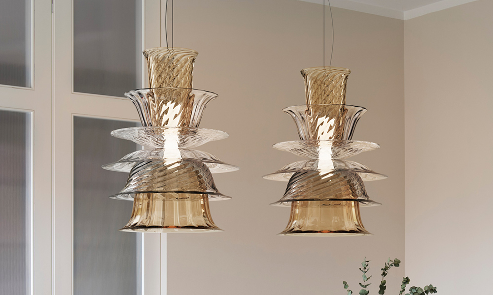 Questa nuova collezione sa coniugare perfettamente la tradizione artigianale del brand a uno spirito più vivace e contemporaneo. Il cristallo veneziano è brillante, ipnotico, e interpreta perfettamente un archetipo floreale. La collezione riprende gli elementi della natura e si fa eco di essa, ogni suo componente riesce a farsi multiplo in modo sempre nuovo e spontaneo.