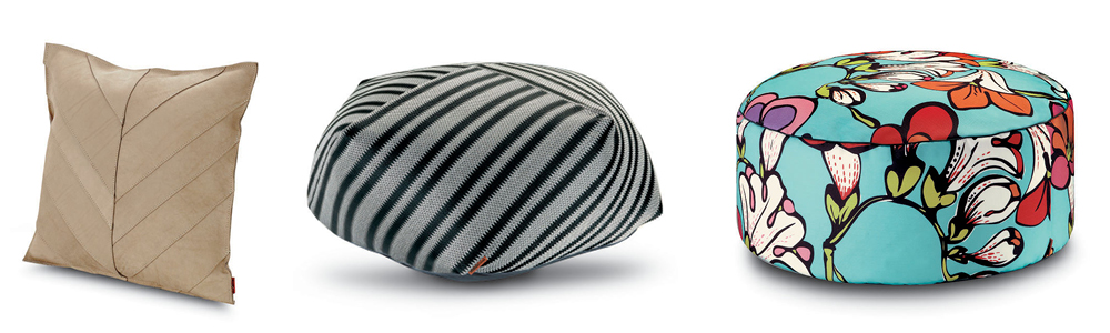 Coerenze di linee anche per divani, per la prima volta di pelle nei toni classici, sedute, lampade e tavoli. La linea per interni si alterna tra Papavero Filigrana caratterizzata da fiori dai toni accesi su sfondo scuro e la linea Fresia caratterizzata invece da una fantasia più minimalista fatta di quadrati colorati.