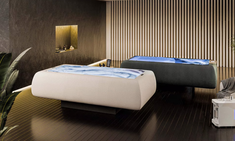 Un’esperienza di galleggiamento asciutto su oltre 400 litri di acqua calda, senza contatto diretto con l’acqua. Una tecnologia brevettata che favorisce il rilassamento profondo, allevia dolori muscolari e articolari, stimola la circolazione e migliora la qualità del sonno. - Zerobody Cryo