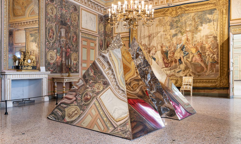 Cinque installazioni scultoree dialogano con lo spazio circostante ricercando costantemente equilibrio. Un percorso fatto di inganno e fantasia in cui i riflessi sia delle architetture rappresentate, sia dei visitatori diventano parte integrante dell’opera. La mostra si rifà alla sapienza miseria antica, nonché all’indagine sull’inconscio molto in voga nel Novecento.