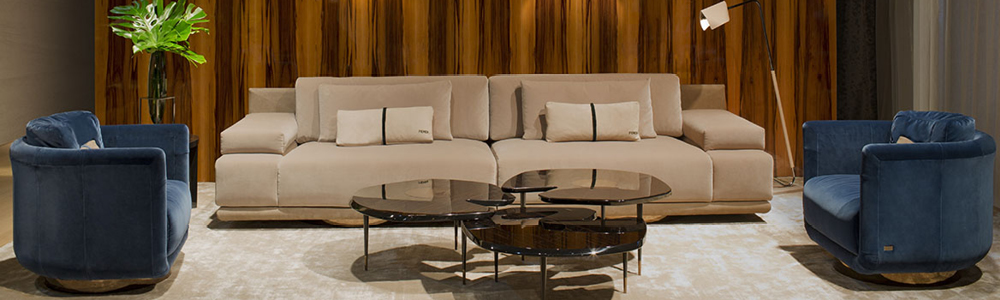 È grazie all’opposizione delle superfici in cuoio, bronzo e pietra, insieme alla palette cromatica costituita dall’alternanza di chiari e scuri, che questo edificio diventa unico, raffinato e originale. L’elegante cortile interno introduce le tre zone living presenti nel Palazzo, ospitando una collezione caratterizzata da linee geometriche e taglienti firmata Toan Nguyen, designer che ha dato vita alla versione Made-To-Order del divano Palmer, pezzo principale di Contemporary.