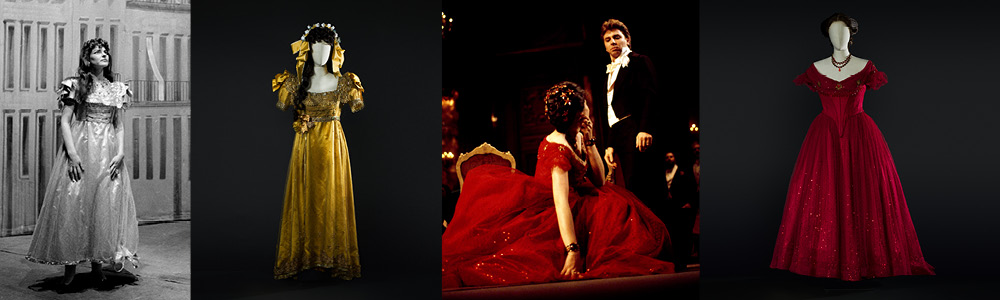 Nelle quattro sale dell’esposizione possiamo ammirare alcuni degli abiti che sono entrati a far parte della storia del costume e dello spettacolo, realizzati dalle firme più illustri del Teatro, come ad esempio il celebre costumista/scenografo del primo Novecento Caramba, poi Anna Anni, costumista attenta al dettaglio storico, Piero Tosi, Gabriella Pescucci e Franca Squarciapino, tutti vincitori di premi Oscar; e ancora, gli stilisti Gianni Versace e Karl Lagerfeld.