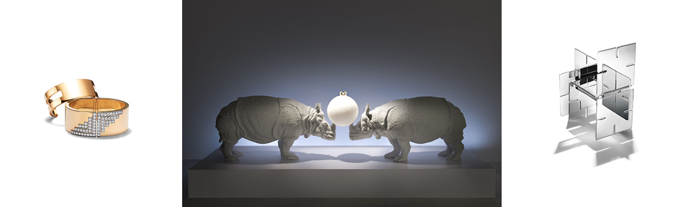 Per il piacere di collezionisti e amanti del design, vi sono articoli da regalo realizzati in argento altrettanto sorprendenti: una fiaschetta a forma di pesce, un porta pillole a forma di piccolo contenitore di cibo cinese take away e una clip ferma pantaloni dedicata ai ciclisti più eleganti. La collezione comprende anche un puzzle da scrivania, che va incontro alle menti più curiose, un cappellino in argento, perfetto per rendere memorabile qualsiasi party e tre ironici fermasoldi in argento a forma di simbolo del dollaro o di busta da lettere, introdotti nella collezione proprio in occasione del Salone del Mobile.