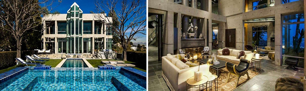 A Los Angeles lascia un quartiere tra i più prestigiosi e una villa faraonica, ristrutturata dopo pochi anni dal suo ingresso, con panorama mozzafiato e scenografia da party stellari, curata dal progettista David Lawrence Gray. La nuova reggia è di struttura minimal, con cementi a vista e riempita di arredi eccentrici e coloratissimi.