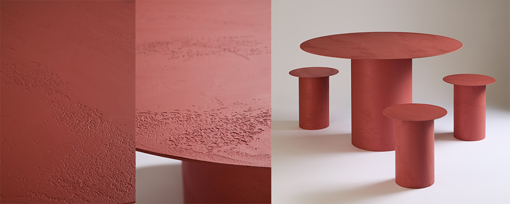 La cromia scelta è frutto di un lavoro di ricerca congiunto: tonalità minerali e accenti polverosi che si ispirano al paesaggio naturale e ai suoi cambiamenti. Non colori patinati, ma pigmenti che vivono e si trasformano con la luce, rivelando sfumature diverse nelle varie ore del giorno.