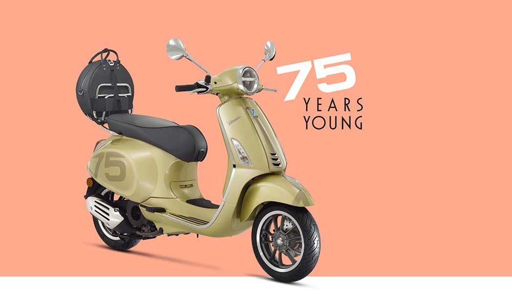 In occasione dei settantacinque anni di Vespa, Piaggio ha deciso di lanciare l’edizione limitata Vespa 75th: appositamente pensata per l’occasione, rimarrà disponibile soltanto per il 2021. Sono due i modelli proposti per festeggiare il compleanno di Vespa: Vespa Primavera, nelle cilindrate 50, 125 e 150 cc, e Vespa GTS nella cilindrata 300 cc. Vespa 75th è un concentrato celebrativo di tutte le tappe culturali, sociali e stilistiche dagli anni Quaranta. Racchiude in una lamiera la storia unica e irripetibile che la rende ancora oggi tanto speciale. Omaggiando la sua identità e al contempo investigandone il futuro, Vespa 75th rivive e anticipa attraverso il design una dimensione temporale che si fa astrazione iconica. L’edizione speciale Vespa 75th mette in bella mostra con orgoglio un numero simbolo: il 75. Una grafica in giallo pirite metallizzato opaco che riprende la cromia del cravattino è posta sulle sacche laterali e sul parafango, in elegante contrasto con la distintiva colorazione Giallo 75th metallizzato lucido, impreziosito da una targhetta celebrativa.