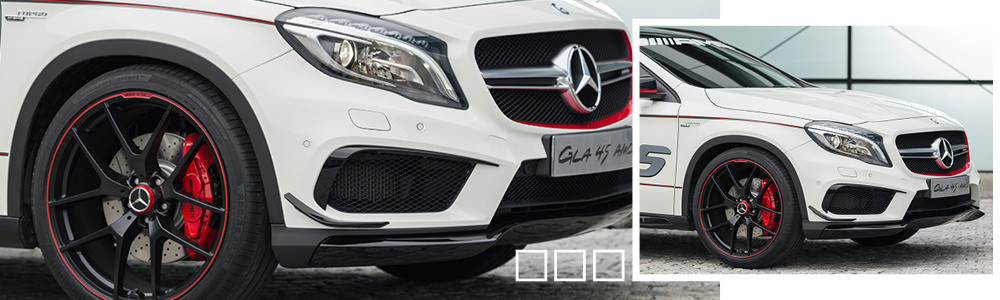 Presentata in anteprima all’ International Auto Show di Los Angeles e al Salone di Detroit, la nuova Mercedes GLA 45 AMG ha un design grintoso e possente, con cerchi in lega, interni in pelle lavorata a mano e microfibra dinamica con cuciture rosse e cinture di sicurezza che riprendono la stessa tinta.