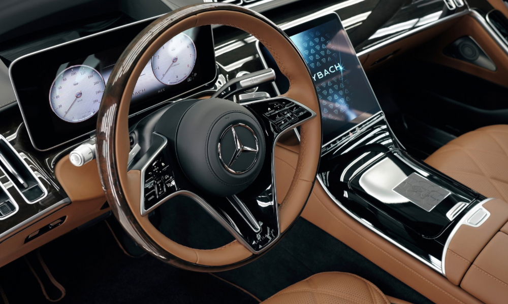 Ogni Mercedes-Maybach V12 Edition è un pezzo unico, firmato dal programma MANUFAKTUR, dove artigiani altamente specializzati realizzano ogni dettaglio a mano. La carrozzeria sfoggia una spettacolare verniciatura bicolore, verde oliva metallizzato e nero ossidiana, che richiede fino a dieci giorni di lavorazione. All’interno, regna l’eleganza del cuoio saddle brown, la lucentezza della radica di noce e i riflessi dorati che illuminano la console centrale con l’incisione “1 of 50”. Persino l’emblema Maybach è arricchito da una medaglia in oro 24 carati, tributo al leggendario “12” dei motori Zeppelin. Ogni auto è un capolavoro irripetibile di design e maestria.