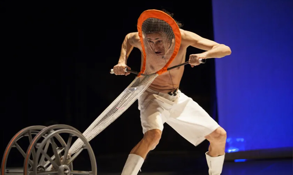 Un uomo che costruisce la sua vita e la sua immagine riproducendo se stesso, costruendo immagini nuove di sé che non esistono. Per farlo, si fotografa in situazioni diverse da quelle reali e trasforma queste foto in realtà illusorie. Costruisce un’idea di se stesso nella sua mente, nel mondo immaginario da lui creato, nelle sue foto. In questo mondo fittizio è un politico che parla a una folla che però non esiste, così come tutto il resto che lo circonda; poi diventa un costruttore di ospedali, e poi ancora un primario. Addirittura, a un certo punto di questa vita, si trasforma in donna, passa all’altro sesso. Alla fine realizza la sua condizione, e capisce che l’unica cosa che davvero gli apparteneva era la solitudine, che non può essere immortalata in alcun modo. Viene messo in scena uno spettacolo tra arte, teatro e performance.