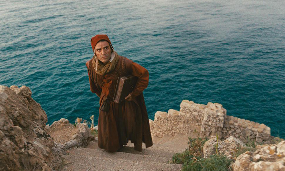 Schnabel, pittore prima ancora che regista, costruisce un film che somiglia più a una galleria di quadri che a una narrazione classica. Alterna bianco e nero a esplosioni di colore, riti medioevali a gangster story metropolitana, filosofia a violenza, sacro a profano. Il risultato è un’opera febbrile, traboccante di suggestioni, interpretata da un cast sorprendente: Oscar Isaac presta corpo e intensità tanto al Dante storico quanto al Tosches contemporaneo, affiancato da volti come Al Pacino, Gal Gadot, Gerard Butler e persino Martin Scorsese.
