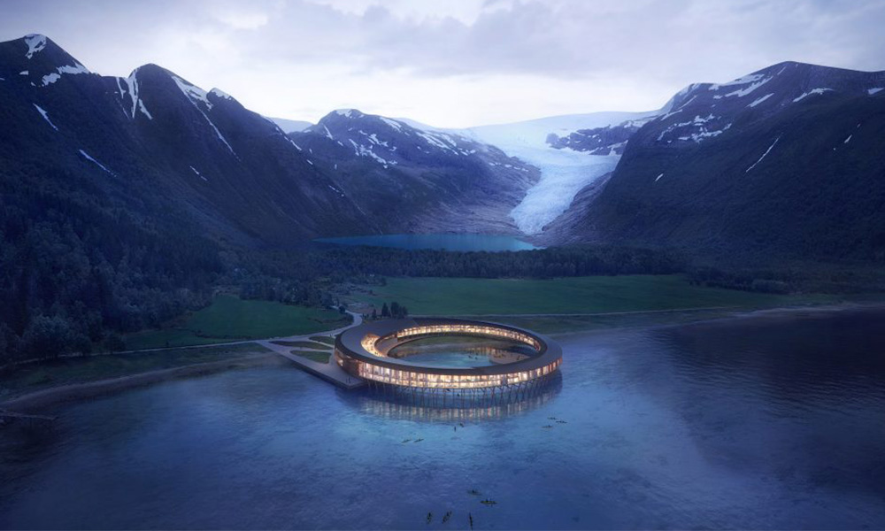 Sarà Meløy, piccolo comune a nord della Norvegia, ad ospitare la new entry delle costruzioni ecosostenibili. E al colore del paesaggio circostante, in particolare del ghiacciaio Svartisen, è ispirato il nome Svart, “nero” in norvegese. Ma a stemperare i toni cupi della natura nordica, ci penserà la trasparenza dell’hotel. L’edificio presenterà infatti una struttura circolare percorsa da enormi vetrate e sostenuta da palafitte in legno. Peter Bundgaard e Signe Bindslev Henriksen, i fondatori dello studio di architettura norvegese Snohetta, ideatore del progetto, si sono attenuti all’estetica dello stile locale. Il design dell’albergo si ispira infatti alla tradizionale Fiskehjell, struttura lignea usata per essiccare il pesce, e al Rorbue, casa stagionale dei pescatori.