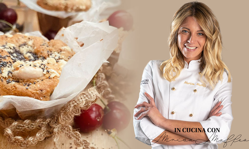 Ricetta: Muffin alle ciliegie decorati con semi di papavero e crumble
