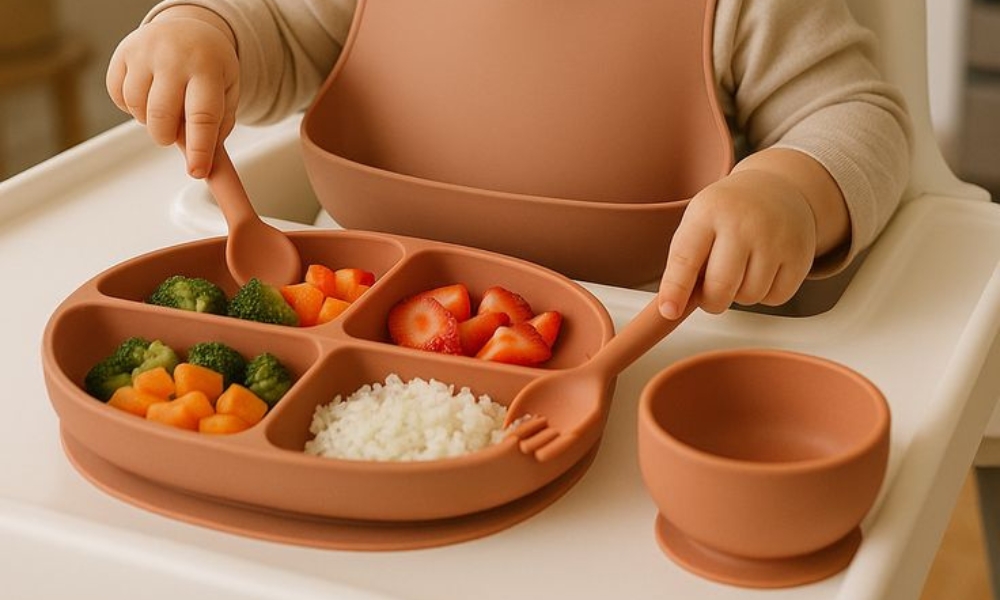 Molto utile è puntare sui piatti di silicone già divisi con gli spazi dedicati ai vari nutrienti: in questo modo, già dai primissimi approcci con il cibo solido o semi solido il bambino comincia ad apprendere la differenza fra i principi nutritivi e le proporzioni ideali per una dieta sana.