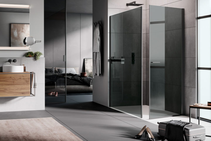 La doccia “walk-in”, che coniuga perfettamente praticità della pulizia e raffinato gusto estetico, non può mancare in un bagno di tendenza