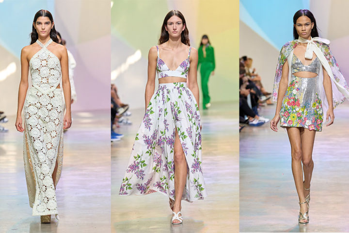 Ricami in pizzo e articoli crochet molto romantici hanno caratterizzato gli outfit della passerella della collezione PE 2023 firmata Elie Saab