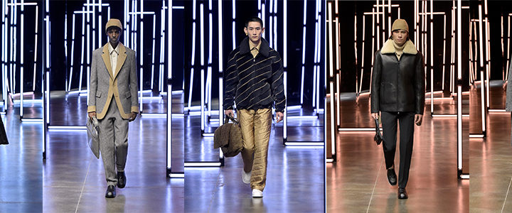 Fendi Uomo A/I 20-21 proietta i grandi classici maschili nella modernità grazie ad un gioco di zip, trasformando i capi – e lo styling