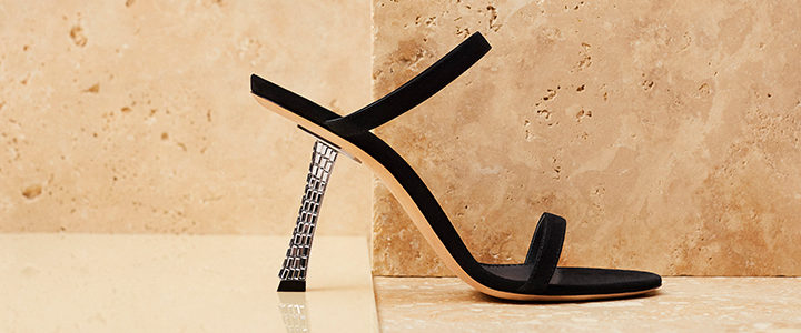 Giuseppe Zanotti presenta Farrah. Un nuovo sandalo con un tacco che, come i più grandi palazzi, sfida la gravità e cattura per il suo