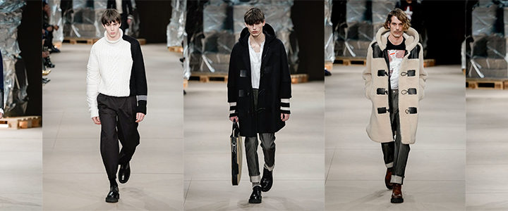 Sfila a Milano la nuova collezione di Neil Barrett, tra musica elettronica e suoni grunge sfila uno stile minimalista composto da tessuti ricercati