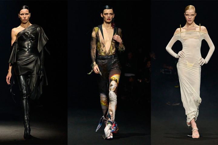 Una collezione tra pelli, veli trasparenti, micro abiti, frange, paillettes e cinture sovrapposte