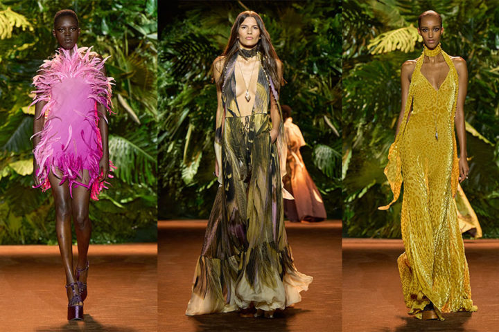 La collezione Roberto Cavalli Primavera/Estate 2024 disegnata da Fausto Puglisi è un viaggio in un paradiso a metà fra il tropicale e il biblico