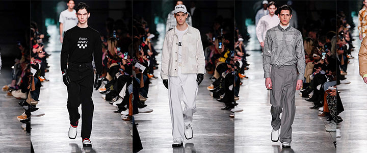 Sulla passerella MSGM si assiste ad un vero e proprio omaggio alla velocità e alla città di Milano, dove tutto, compresa la moda, segue